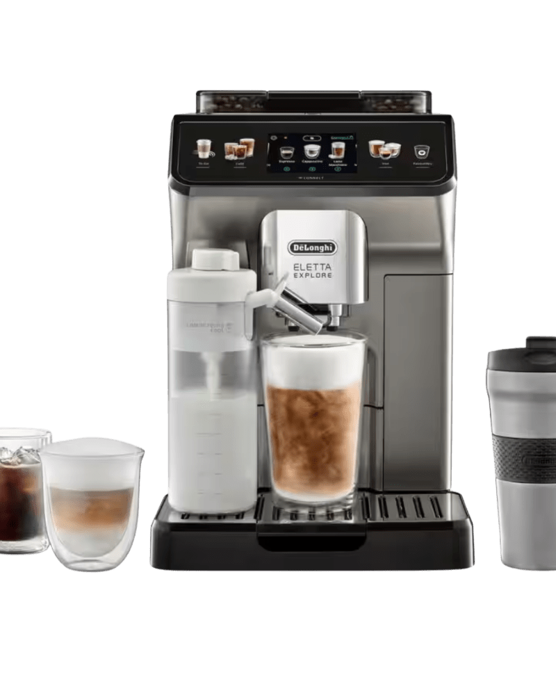 La De’Longhi Eletta Explore est une machine à café à grains haut de gamme conçue pour offrir un choix exceptionnel de boissons chaudes, froides et lactées. Grâce aux technologies LatteCrema Hot & LatteCrema Cool, elle prépare aussi bien des cappuccinos crémeux que des boissons glacées parfaitement texturées. Avec son interface intuitive, son broyeur précis et sa grande polyvalence, l’Eletta Explore s’adapte à toutes les envies, du matin jusqu’au soir.