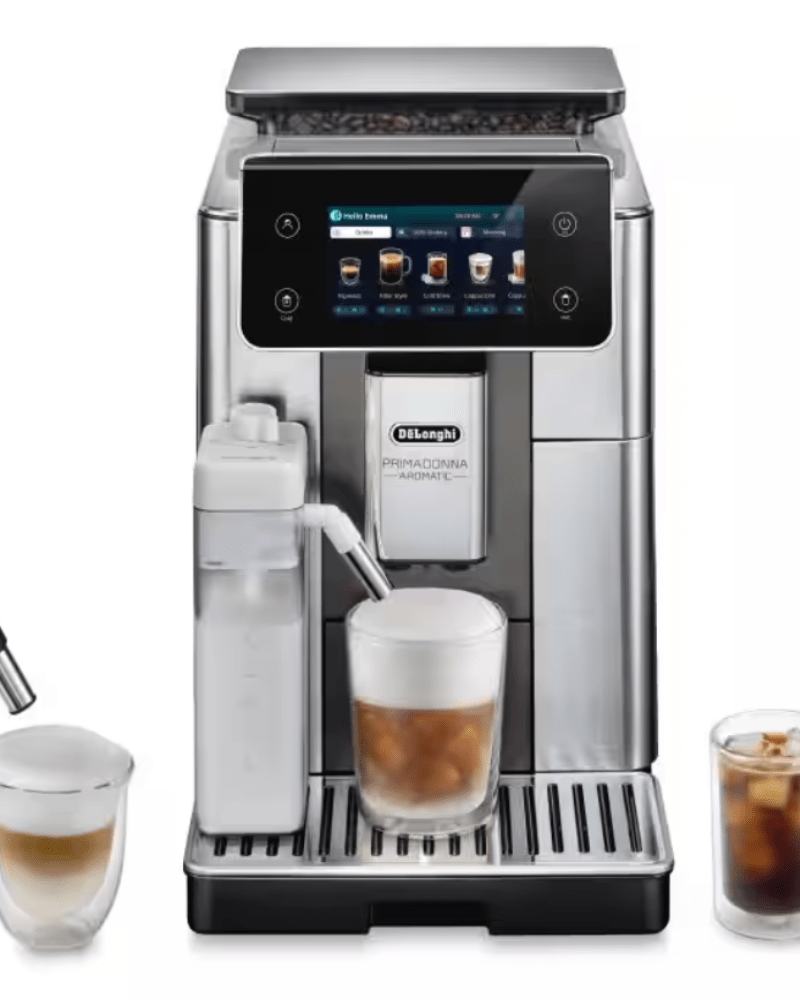 La De’Longhi PrimaDonna Aromatic est une machine à café premium pensée pour les amateurs d’arômes riches et d’extraction précise. Son système Bean Adapt Technology ajuste automatiquement la mouture, la température et l’infusion selon le café utilisé, garantissant un résultat optimal avec les cafés de spécialité. Dotée d’un design élégant, d’un grand écran et du système LatteCrema, elle combine performance, personnalisation et confort d’utilisation.